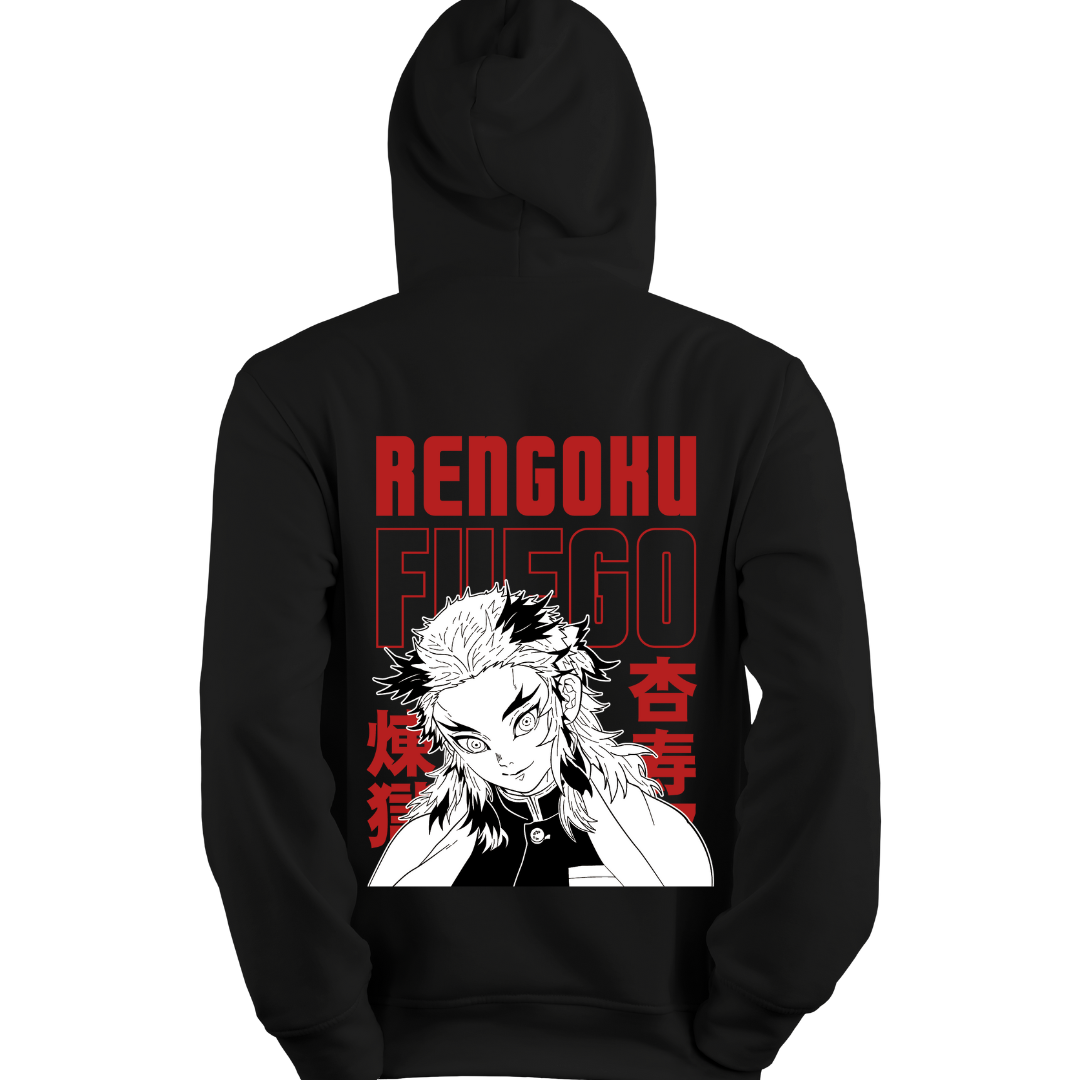 Bring the fire with the Flame On: Rengoku Hoodie! This hoodie features a striking graphic of Kyojuro Rengoku, the Flame Hashira, bringing his fiery passion and unstoppable energy right to your wardrobe. Made from a premium 390 GSM cotton blend, it delivers comfort, warmth, and durability. The regular fit ensures you look and feel great, whether you’re chilling with friends or standing up for what’s right, just like Rengoku.