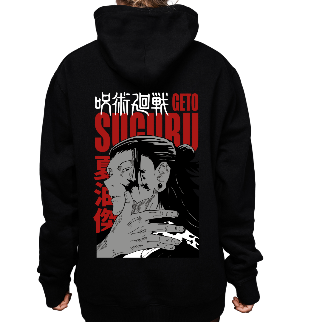 Time to channel your inner curse mastermind with the Geto the Curse Outta Here: Geto Hoodie! Featuring an intense graphic of Suguru Geto, this hoodie embodies the power, charisma, and mischievous energy of the infamous Jujutsu Kaisen character. Made with a 390 GSM cotton blend, it’s the perfect balance of comfort and durability for those who like their style with a touch of chaos. The regular fit ensures you stay comfy and look cool while plotting your next move.