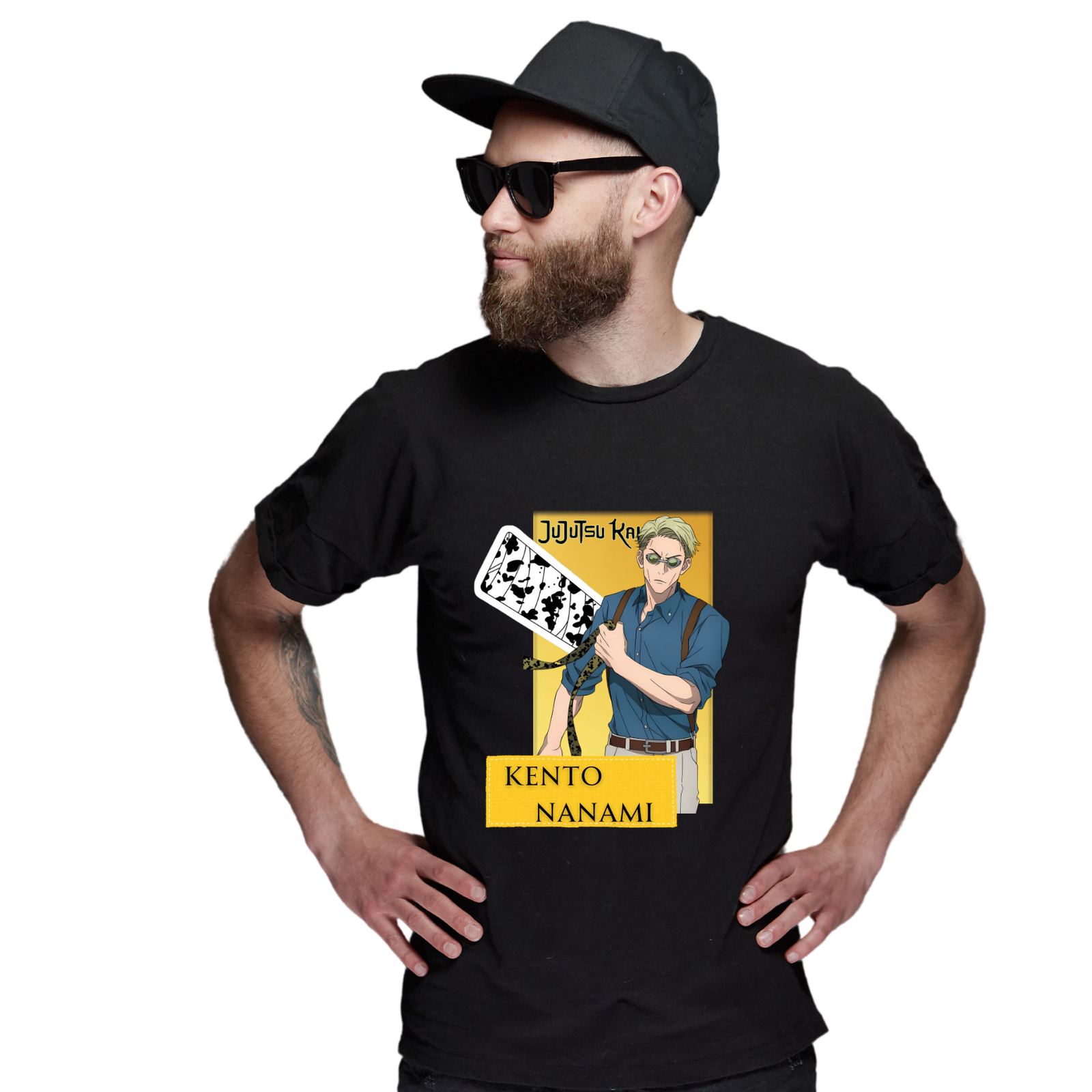 Celebrate the cool and composed strength of Kento Nanami with this stylish graphic t-shirt. Featuring a clean design inspired by his iconic persona, this t-shirt is a perfect pick for Jujutsu Kaisen fans who admire his no-nonsense approach and legendary overtime rule.